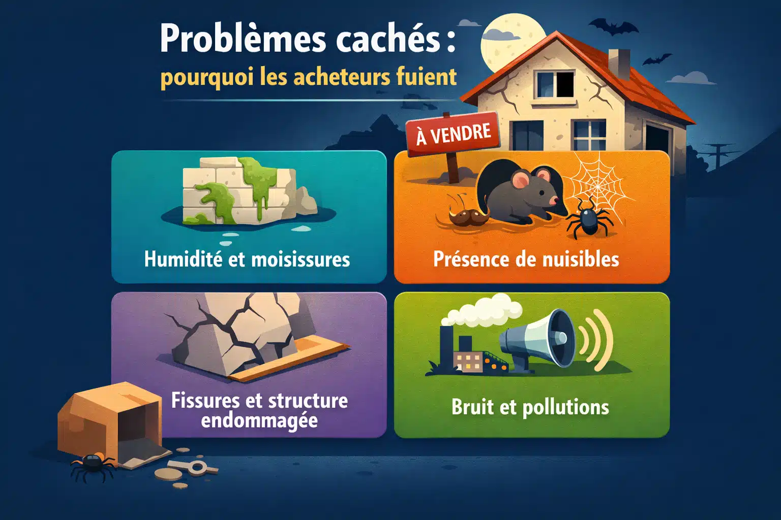 La vente d’un bien immobilier peut rapidement tourner au cauchemar lorsque des défauts insoupçonnés sont découverts par les acheteurs potentiels. Les défauts cachés peuvent entraîner une décote immobilière allant de 10 à 30% selon leur gravité. Humidité, problèmes de structure, vices de construction ou nuisances non révélées constituent les principales causes de dévalorisation. Ces éléments dissuasifs impactent directement la négociation et peuvent même bloquer une transaction. Découvrons ensemble les défauts qui effraient le plus les acquéreurs et leur impact sur le prix de vente.